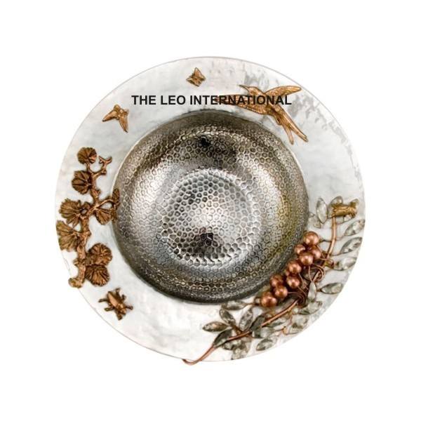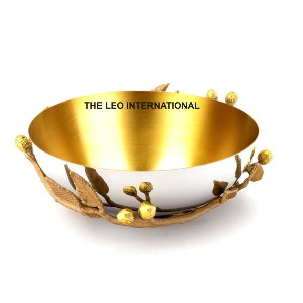 Bol en acier inoxydable à texture martelée de style nordique, bol décoratif pour dîner, bol de service fantaisie à motif feuillage