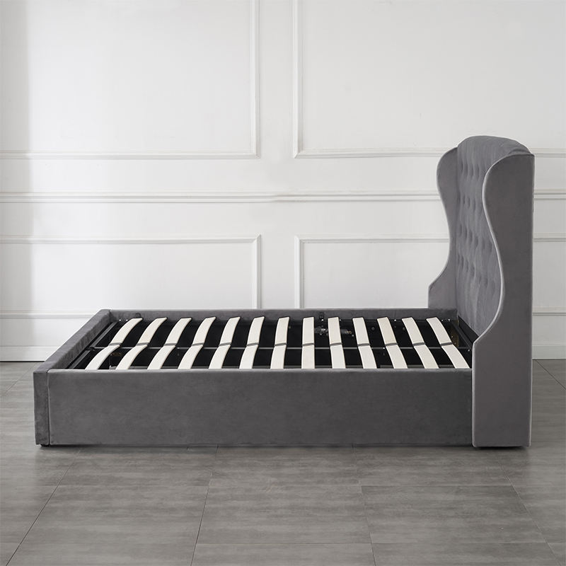 Lit de style nordique avec rangement, finition luxueuse, tête de lit haute moderne, pour ensembles de chambres d'hôtel