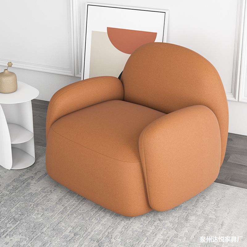 Nordic Style Lambskin Single Sofa Round Upholstered Foam Filling For Child Living Room