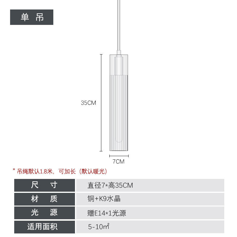 Lustre en cuivre massif de style nordique, luxe léger, tête unique, lampe en cristal postmoderne haut de gamme pour chambre à coucher et salle à manger