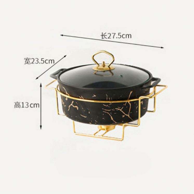Marmite à soupe en marbre de style nordique avec motif doré, pot et bol ovales et rectangulaires pour réceptions, vaisselle avec plateau à bougies