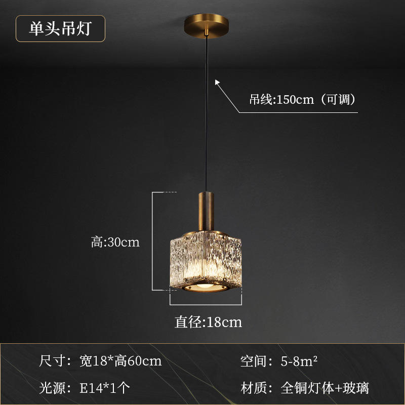 Luminaire suspendu en cristal tout en cuivre de style nordique moderne Minimaliste Chambre principale Étude personnalisée Bar Lustres Lampes suspendues