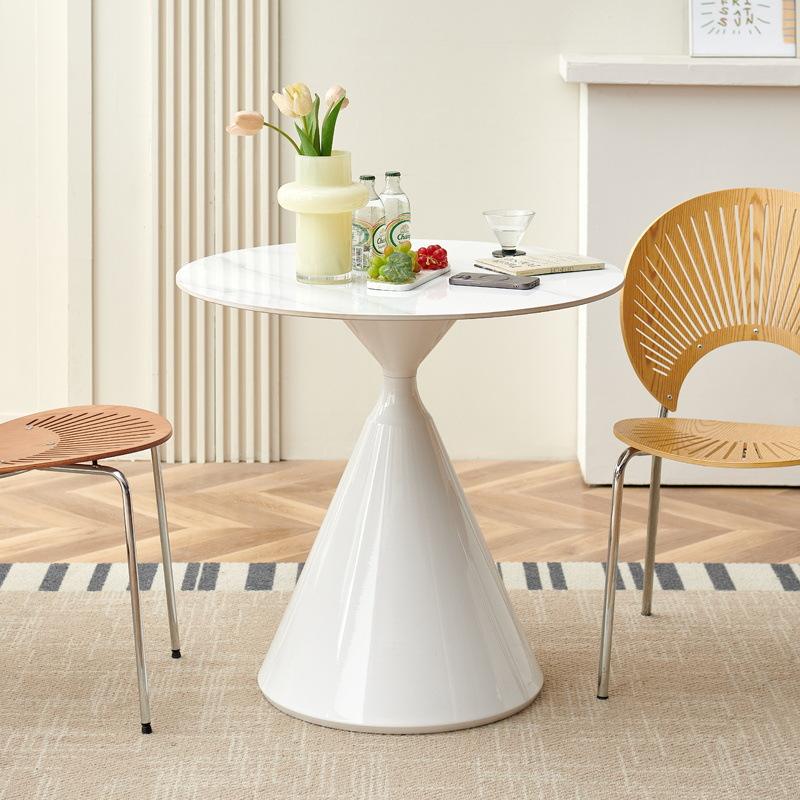 Table à manger ronde en pierre frittée de style nordique, simplicité moderne, avec pieds en métal, 4 places, crème française et blanc pur