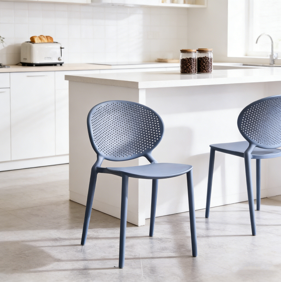 Chaise de salle à manger en plastique moulé d'une seule pièce de style nordique avec dossier perforé rond, légère et imperméable, pour la maison et les cafés