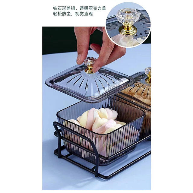 Plateaux à collations en plastique de style nordique avec poignée plateau à fruits secs en plastique transparent pour bonbons pot de stockage de collations domestiques