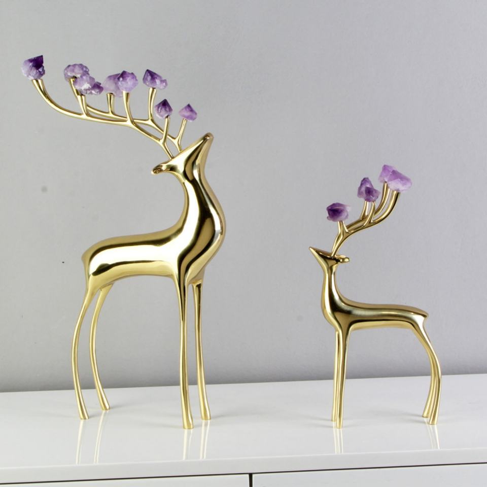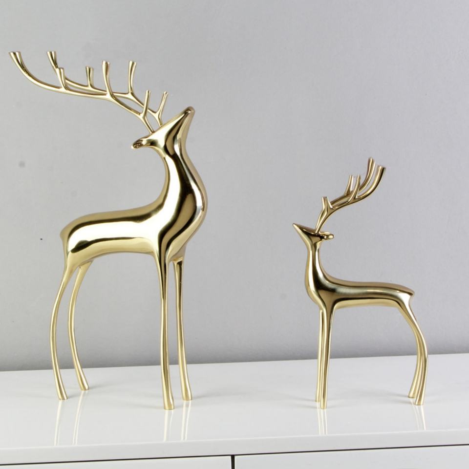Ornement Cerf en Cuivre Pur Style Nordique, Décoration en Laiton Luxe Léger Attirant la Richesse pour la Maison, le Salon, le Meuble TV, l'Entrée