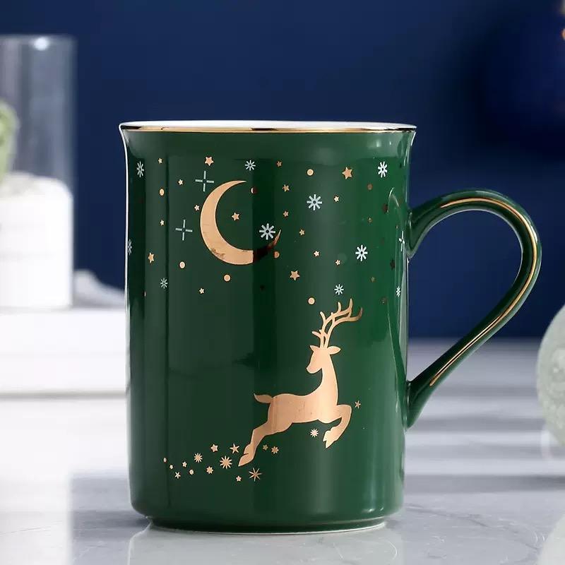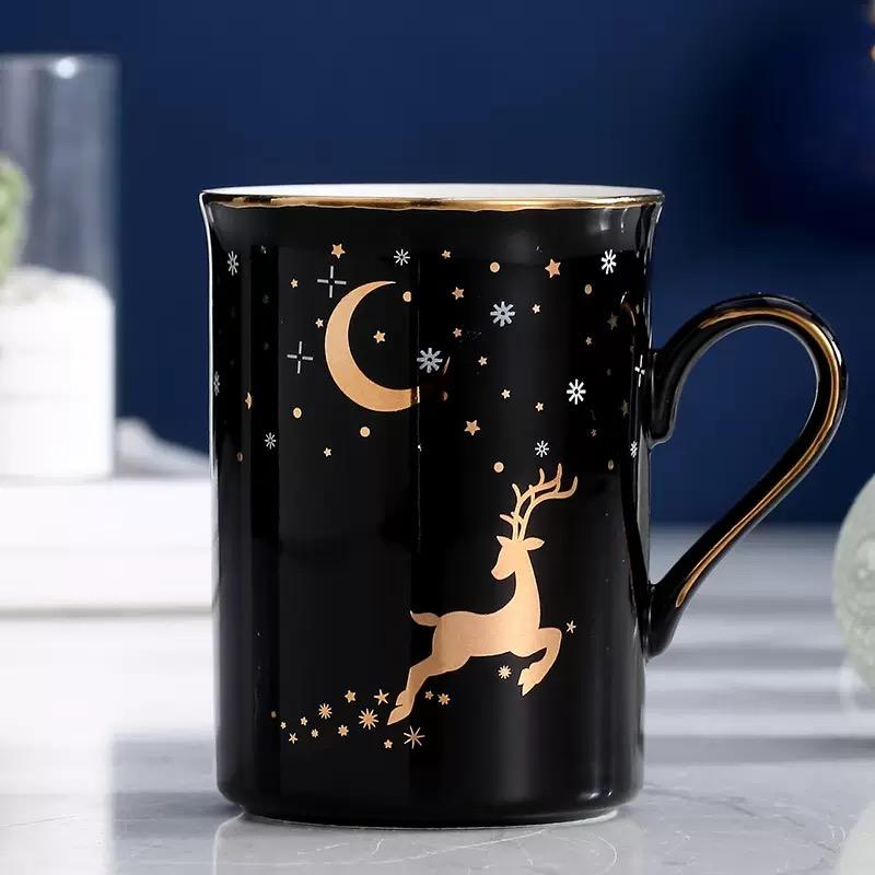 Product Name:Nordic Style Ceramic Coffee Mug with gold reindeer moon star pattern