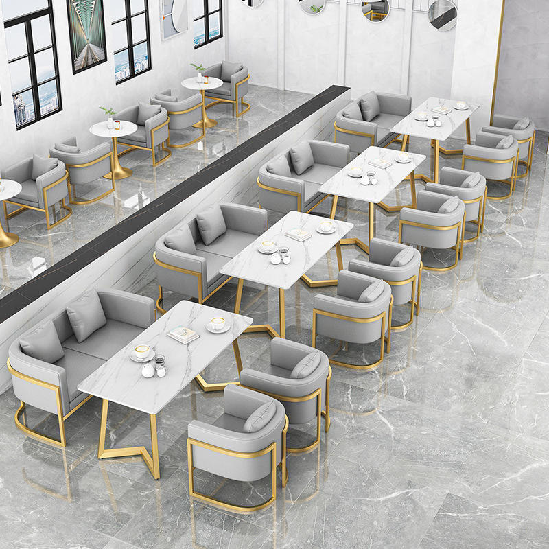 Canapés et banquettes de style nordique pour restaurant, structure métallique, mousse haute densité, ensemble de salle à manger durable