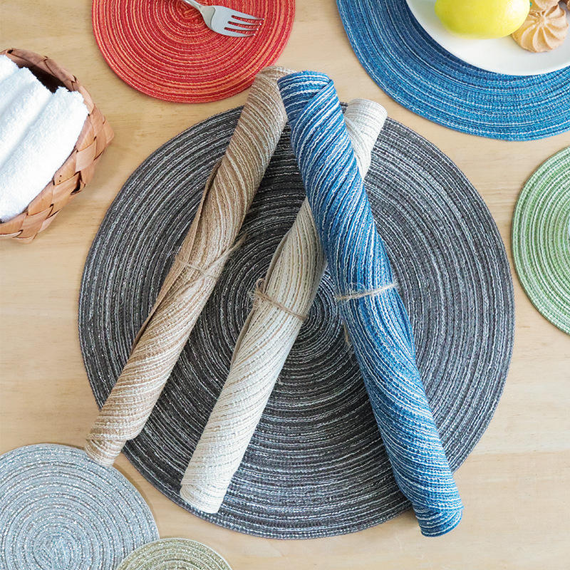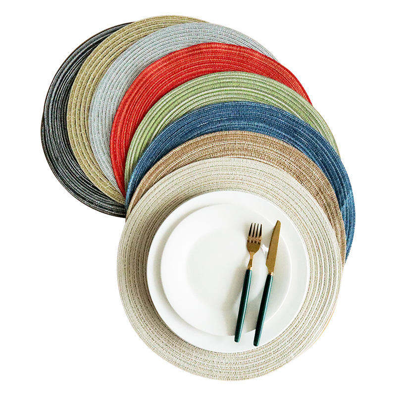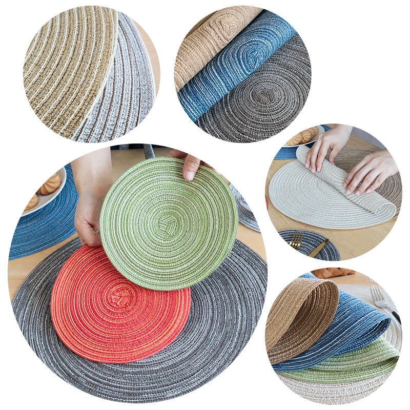 Sets de table et sous-verres ronds de style nordique en coton et lin, couleur unie, lavables en machine, pour la table à manger