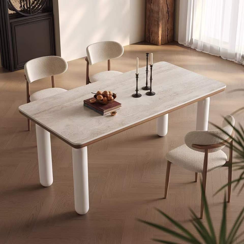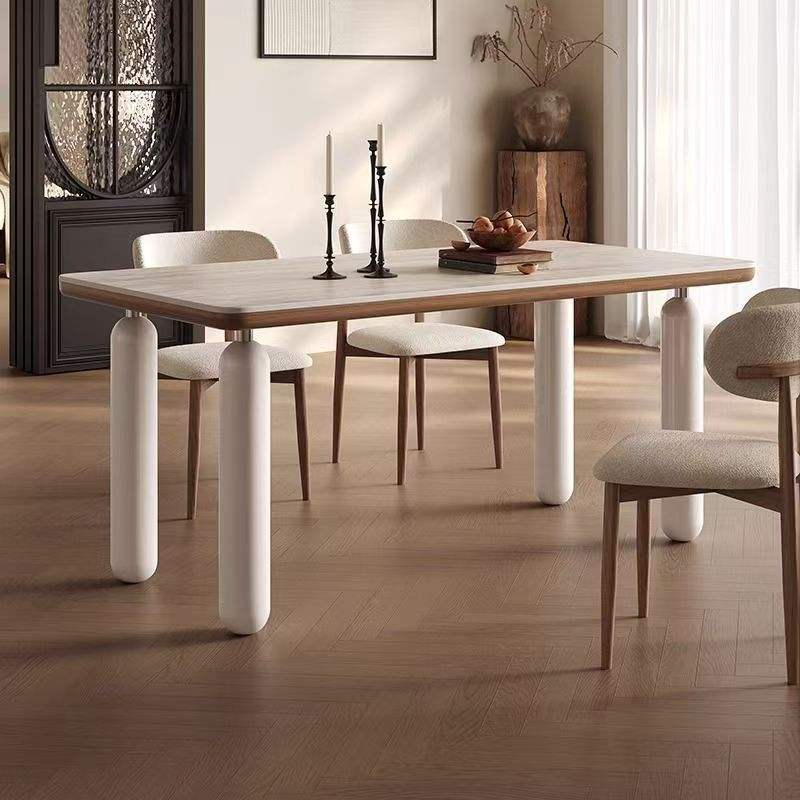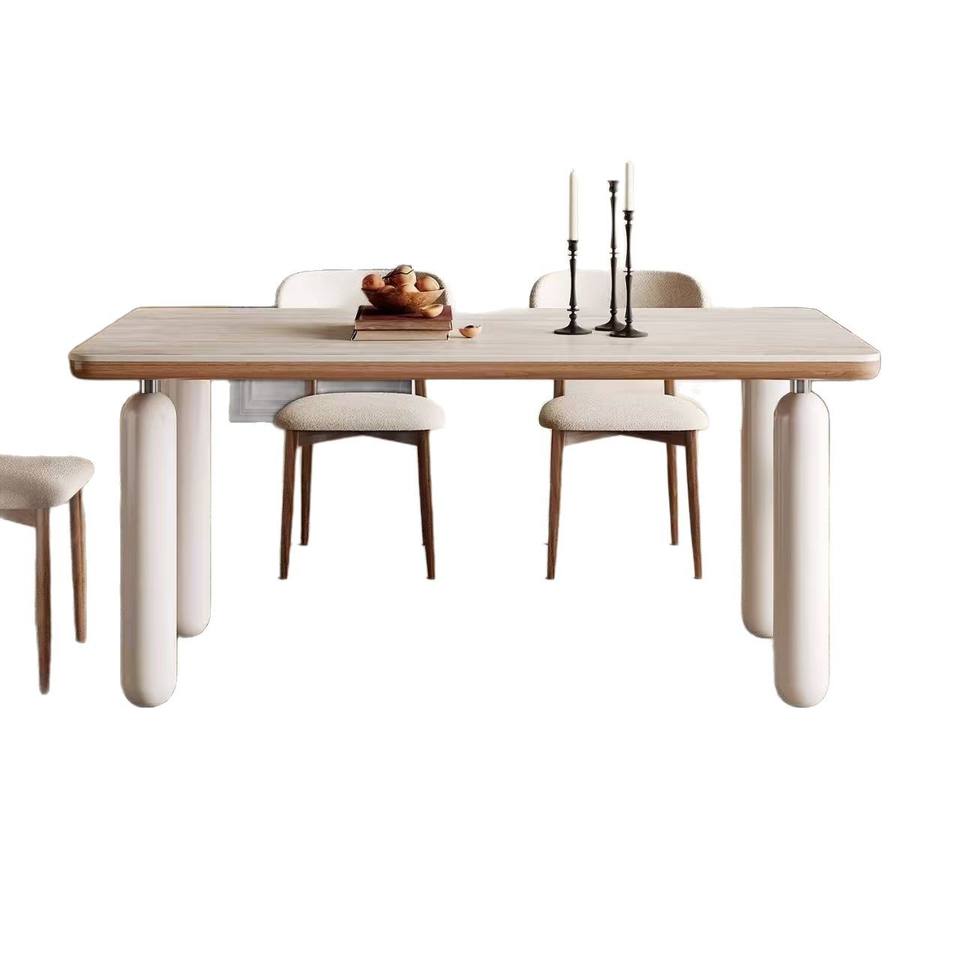 Ensemble table et chaises de style nordique, 4 pièces, moderne, crème, rectangulaire, en bois massif, pour salle à manger