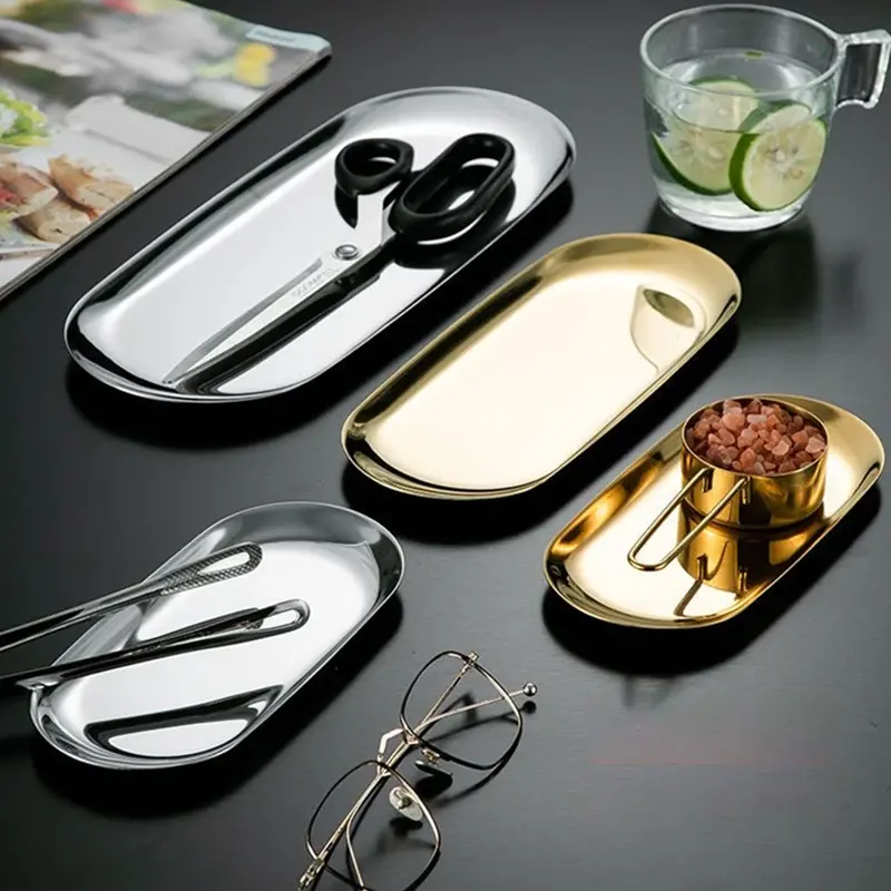 Style nordique Snack Plat Pain Gâteau Assiette À Dessert En Acier Inoxydable Doré Ovale BBQ Assiette Cuisine Coréenne Vaisselle Plateau À Fruits