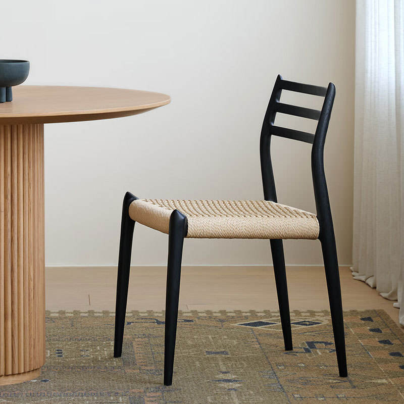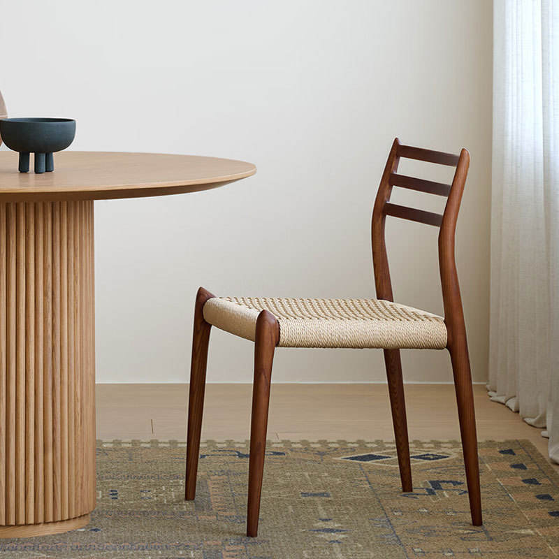 Chaise de salle à manger en bois massif de style nordique, couleur noyer, avec dossier vintage et assemblage à mortaise et tenon, idéale pour les petits appartements