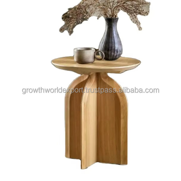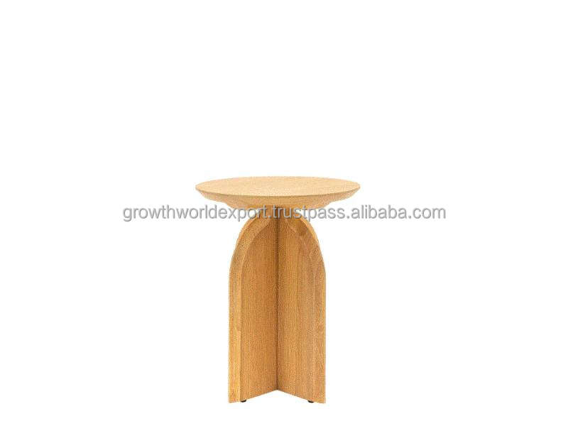 Table d'appoint en bois de style nordique, table d'appoint design à base arquée, table d'appoint contemporaine en bois massif, table d'appoint ronde de style Japandi