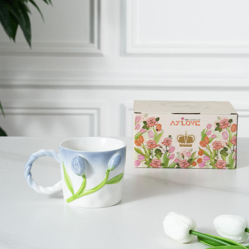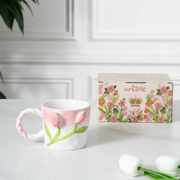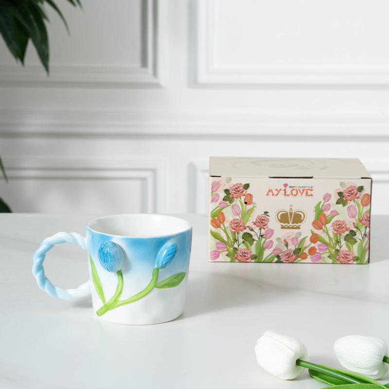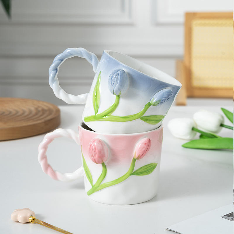 Mug en céramique au design tulipe nordique, tasse en porcelaine avec poignée, sans danger pour les aliments, pour le lait, l'eau, le thé, le petit-déjeuner, cadeaux d'affaires, voyage