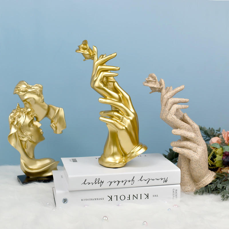 Nordic light luxury gold handheld rose resin decorative ornament TV cabinet dining room living room wine cabinet decorative