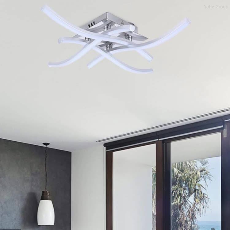 Plafonnier LED encastré au design incurvé moderne nordique, en fer et acrylique, avec commande vocale/sensorielle/télécommande, indice de protection IP33, pour chambres et salons