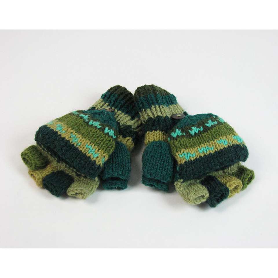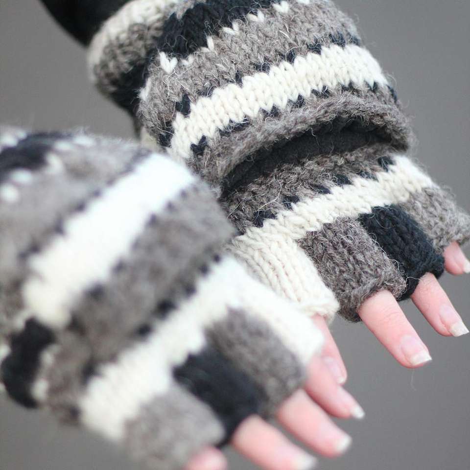 Nordic rainbow Knit Mittens with Fold Over Flap Girls Striped Fingerless Gloves with Mitten Flap