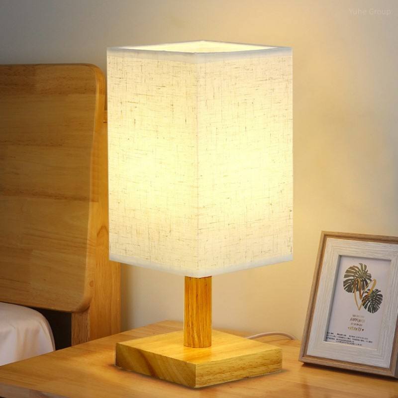 Lampe de bureau d'hôtel de style tissu en bois massif nordique avec abat-jour en métal, lumière LED électrique, veilleuse, charge USB, lampe de chevet