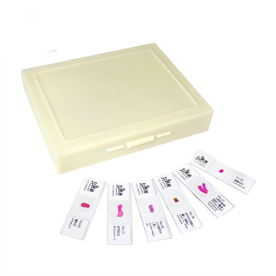 Ensemble de diapositives d'histologie préparées d'abord dans un emballage individuel en plastique ou en boîte en bois de capacité de 100 pièces, puis dans un carton d'exportation
