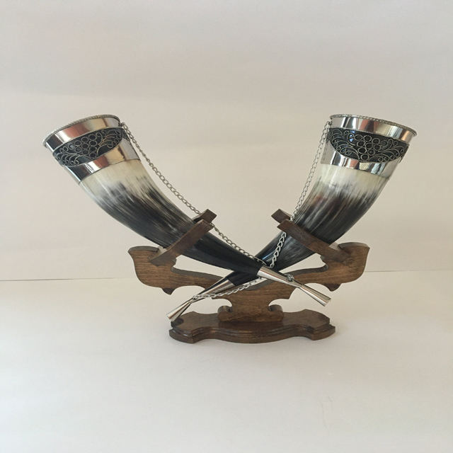 Support en fer pour corne à boire de style nordique avec bords Viking Stein et en laiton Technique peinte à la main Taux raisonnable