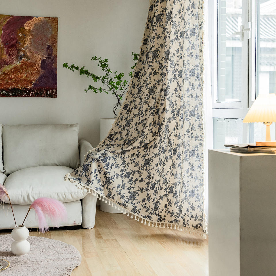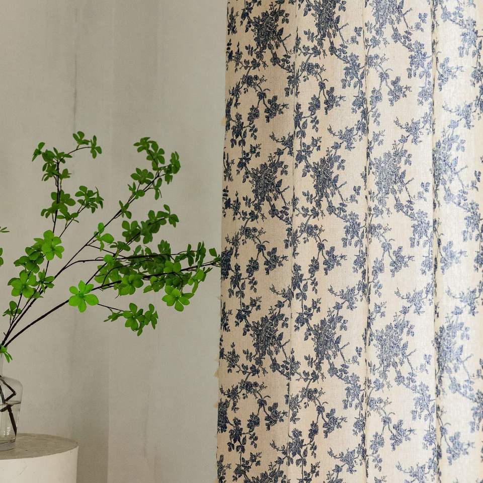 Style nord-américain petite fenêtre rideaux transfrontalier gland café demi rideaux coton lin impression pour balcon baie vitrée