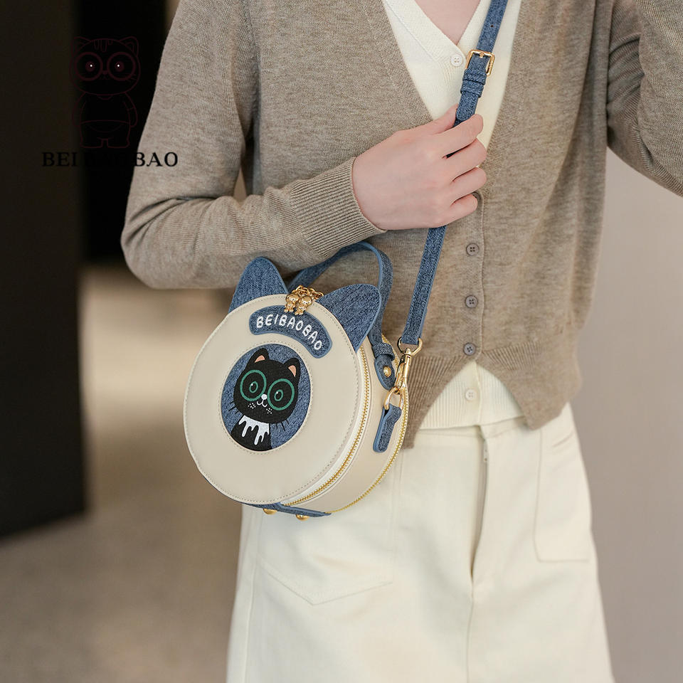 Sac bandoulière compact de luxe léger, nouveau style, motif chat, couleurs contrastées, avec fermeture éclair unique, de la marque North Bag Source Factory