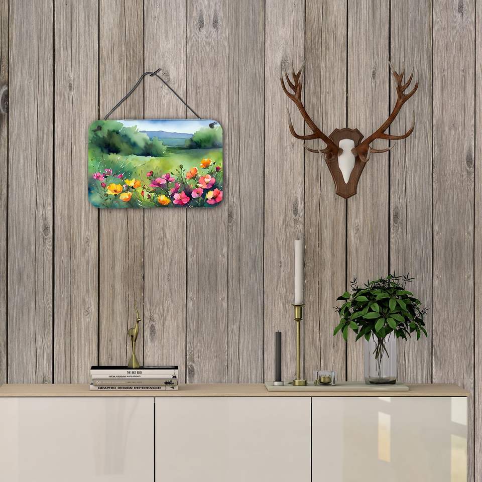 Dakota du Nord Wild Prairie Roses Aquarelle Tenture Murale Multicolore En Aluminium Métal Signe pour Cuisine Bar Décor À La Maison 8HX12W