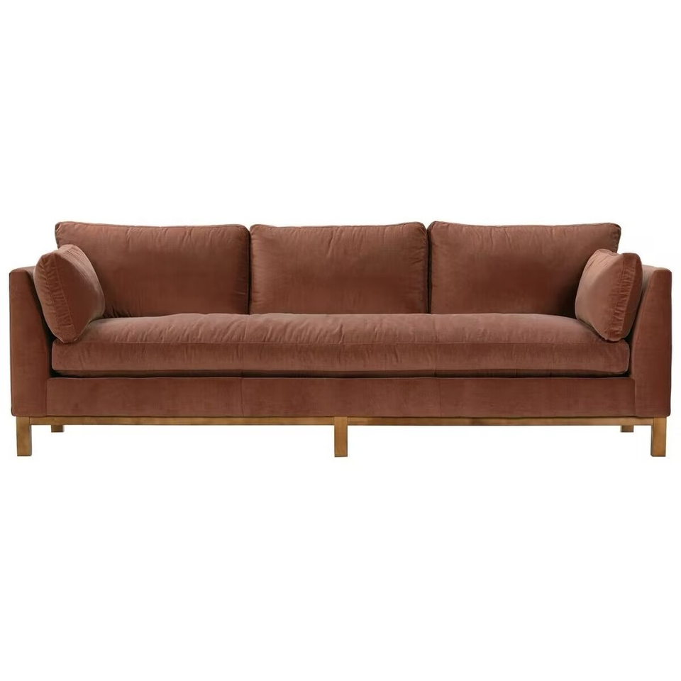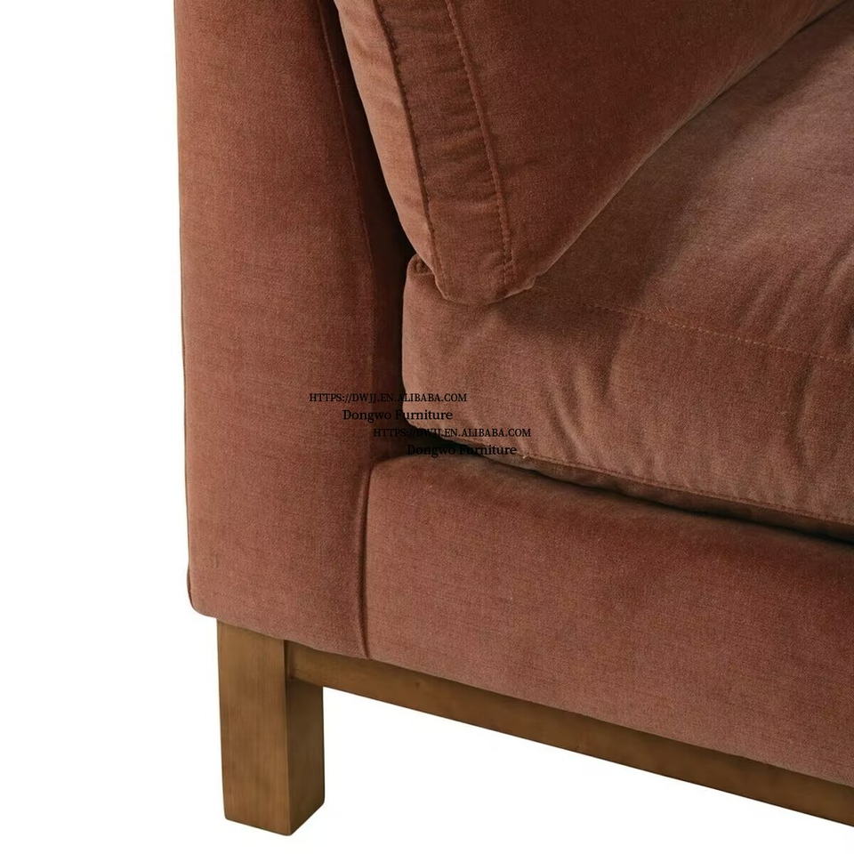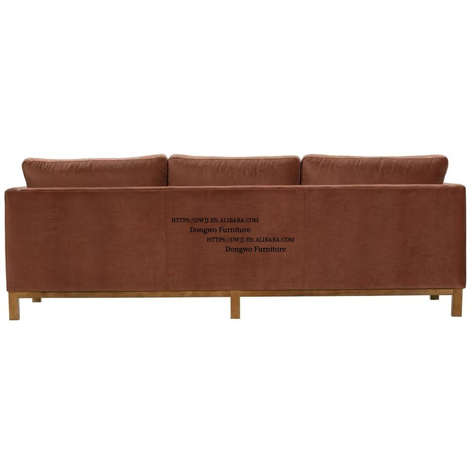 Canapé trois places en tissu velours brun argileux de style rural nord-européen et américain, mobilier de salon design
