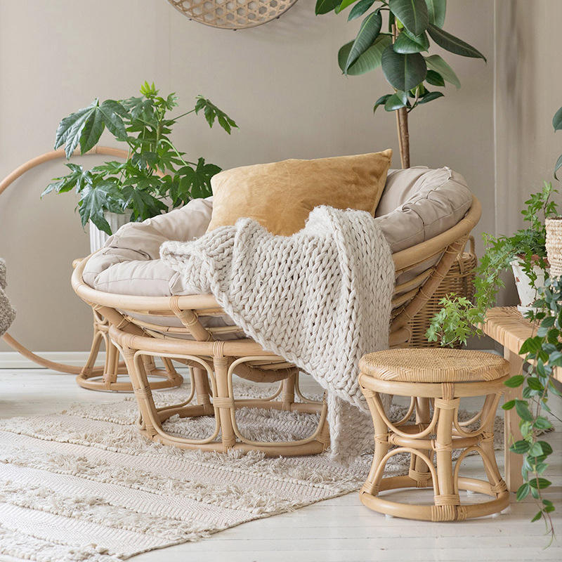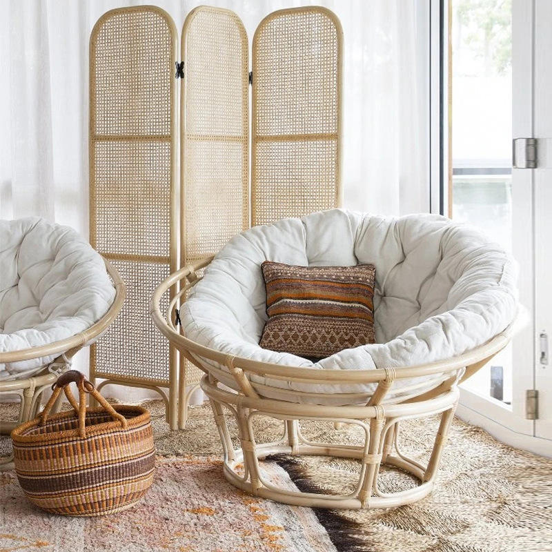 Northern Europe Papasan Sofa Recliner Portable Single Chair with Memory Foam Rattan Frame for Outdoor Living Room Bedroom
