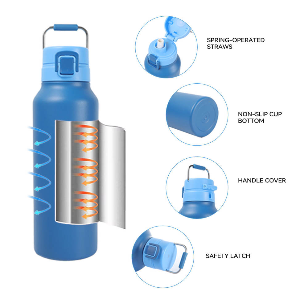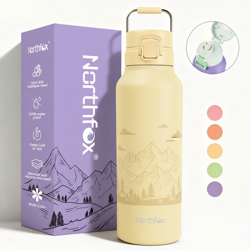 Northfox Nouveau Design Thermos à Double Paroi en Acier Inoxydable 24oz avec Bouchon à Paille et Poignée pour la Salle de Sport et les Voyages – Vente Flash