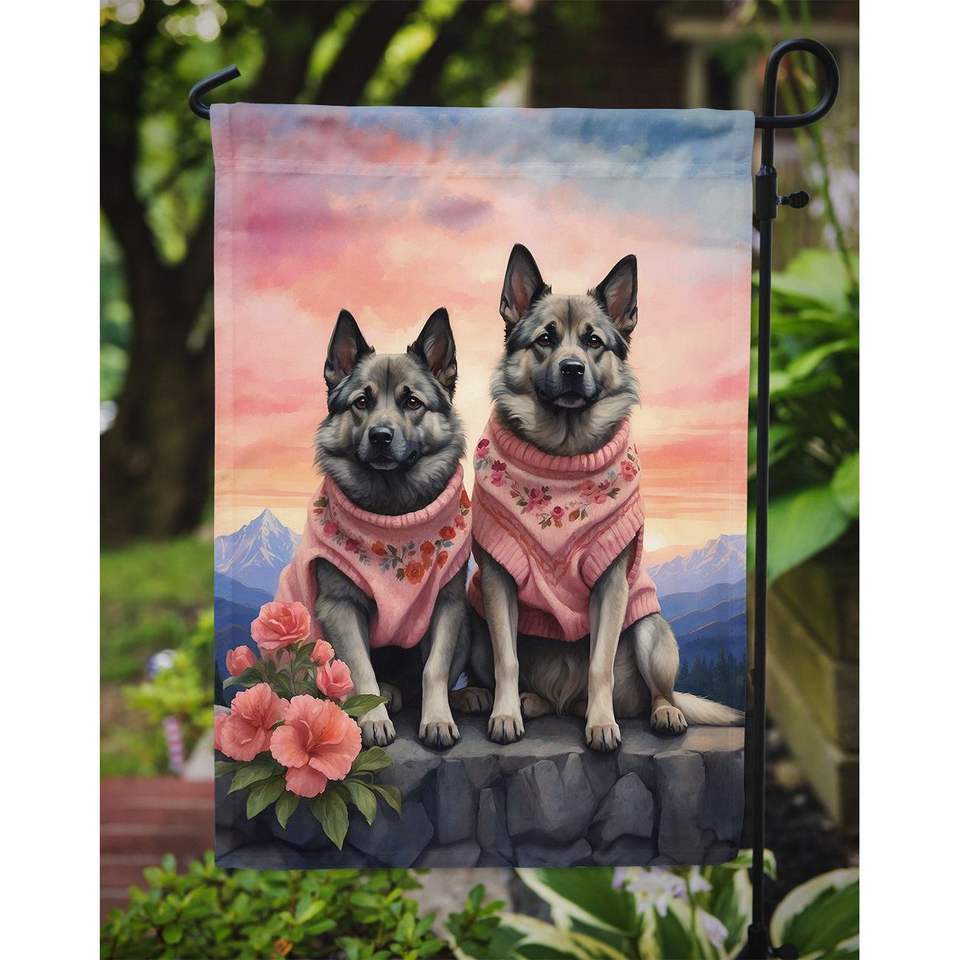 Norwegian Elkhound Two Hearts Garden Flag Multicolor Mailbox Decorative Yard Banner for Patio Artwork Flower Beds Small Size
