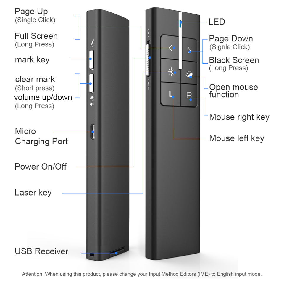 Stylo laser, présentateur sans fil usb, pointeur laser 2.4 ghz