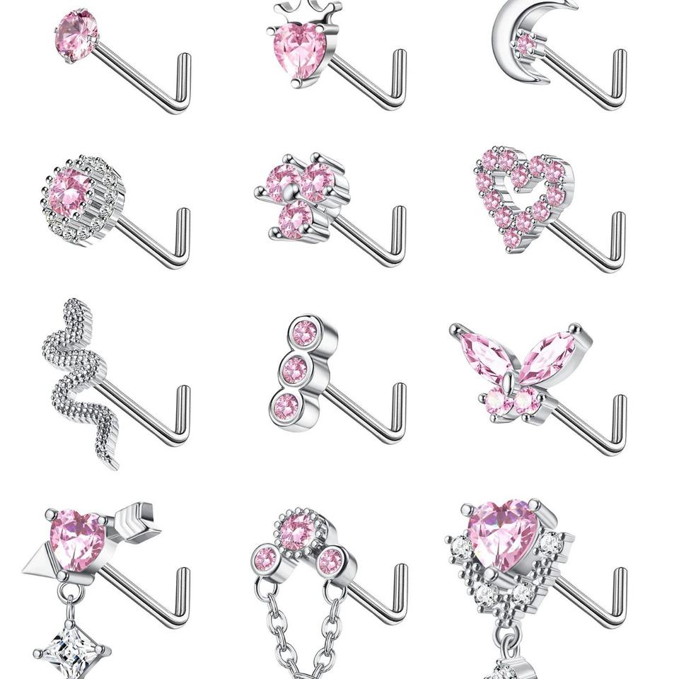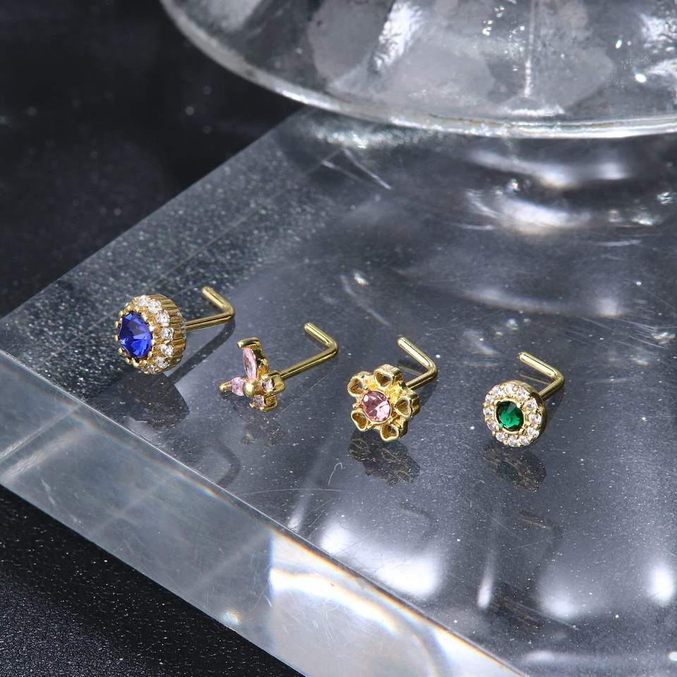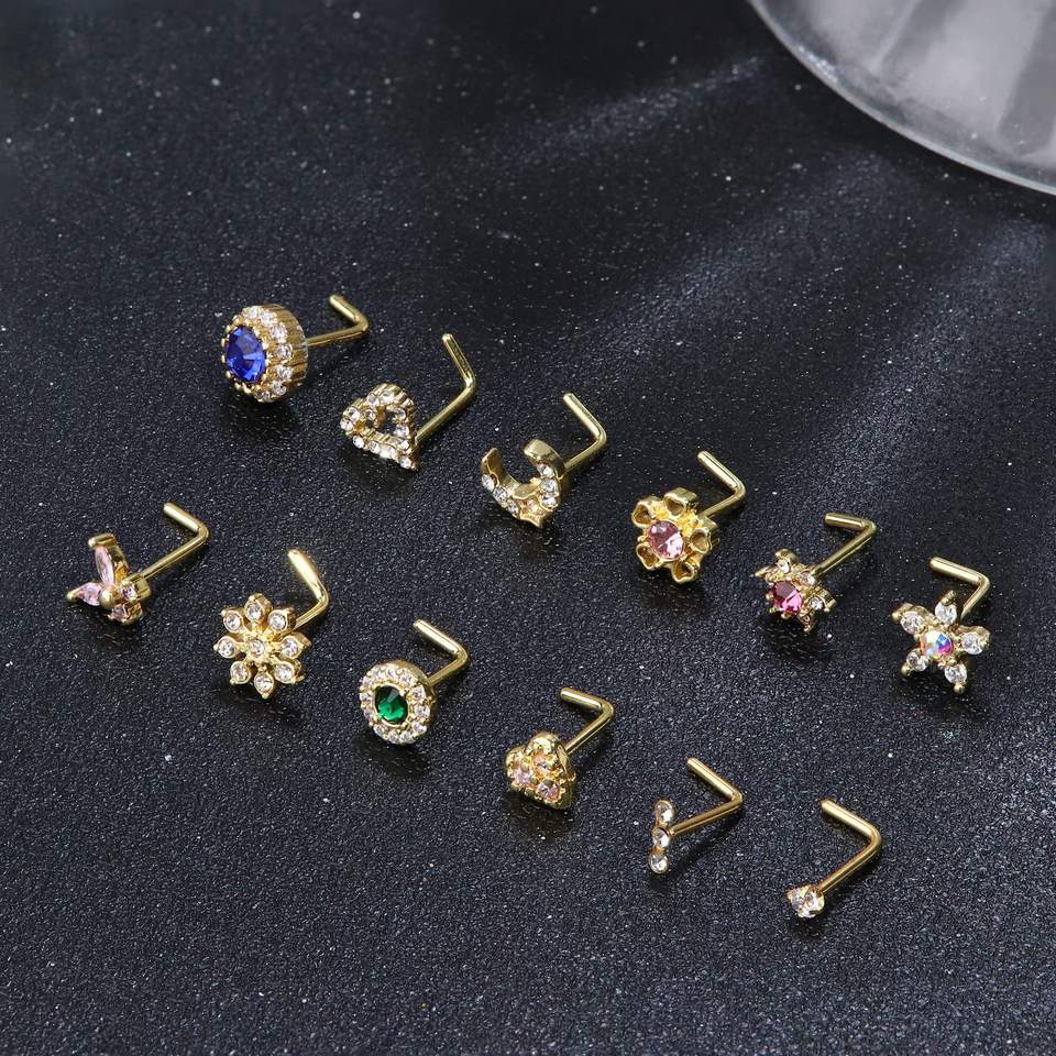Bijoux de piercing au nez, clou de nez en forme de cœur en pierre naturelle, anneau de nez en alliage plaqué or 18 carats, mignon, unisexe