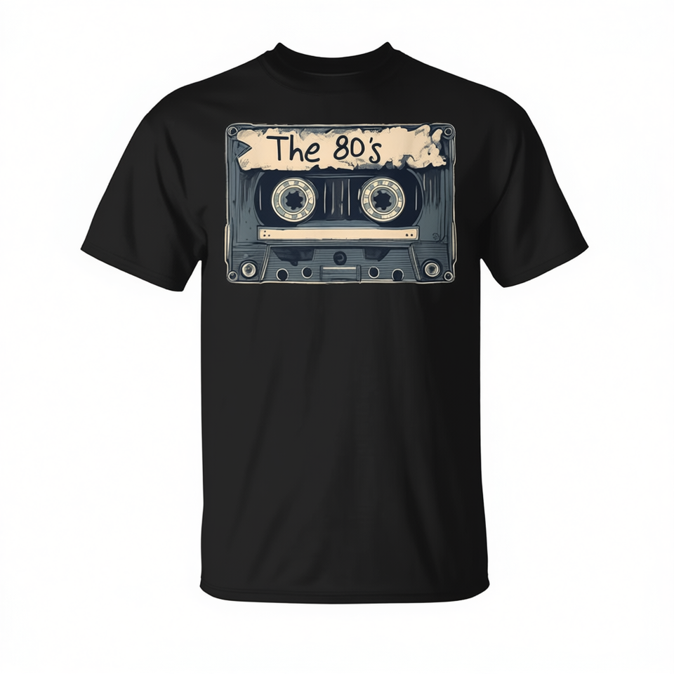 T-shirt graphique rétro nostalgique des années 80 et 90 avec motif de cassette et mixtape