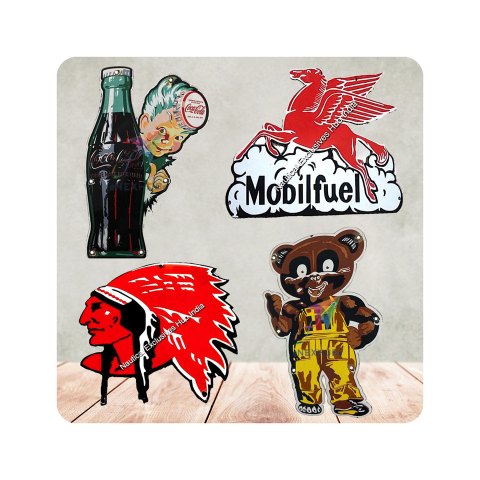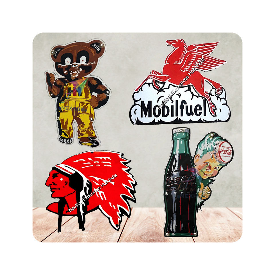 Nostalgique rétro Vintage sérigraphié émail signe personnalisé découpé en métal étain pour cadeau porcelaine fabricant artisanat Application