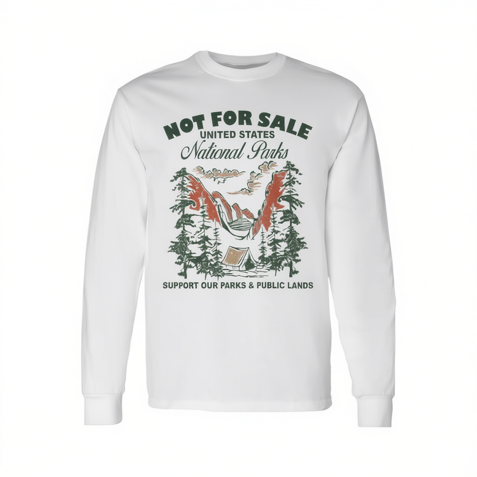 T-shirt à manches longues en coton unisexe, col rond, respectueux de l'environnement, ne se vend pas, soutient les parcs nationaux et les territoires publics