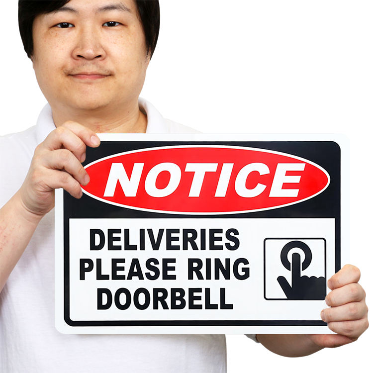 Notice Sign,Deliveries Please Ring Doorbell,12 "x 18"Metal Aluminum Material,Provide Customized Services,Eye-catching Color