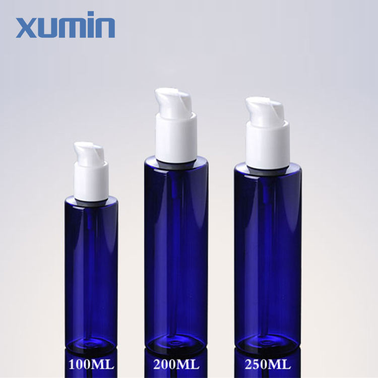 Packaging Details:Mettre dans des cartons et fixer par film rétractable ou emballage de couche intérieure. Nouveau Design blanc bouchon de verrouillage bleu 100 Ml 200 Ml 250 Ml cosmétique bouteille pour animaux de compagnie