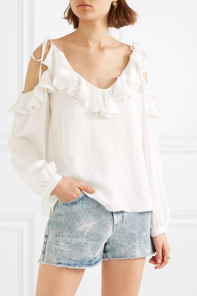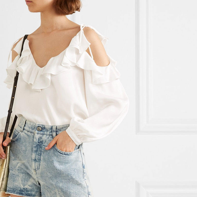 Nouveau Design Sexy Spaghetti Sangle Crop Top coton Dames À Volants Blouse Blanche