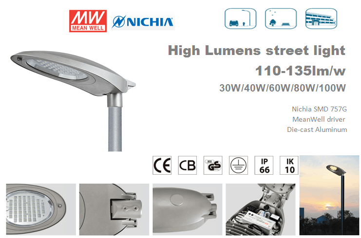 Nom:100 w 110LM/W NICHIA Puce Meanwell Pilote LED Stree Lumière