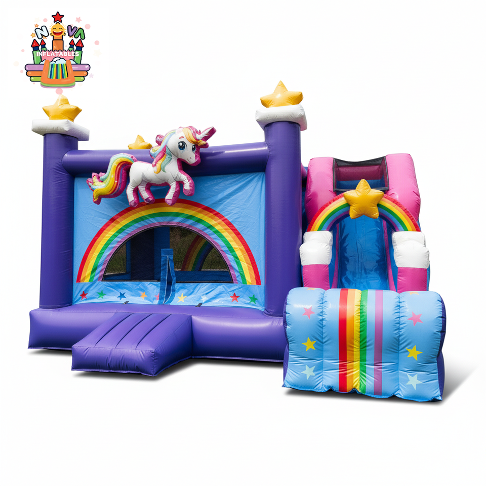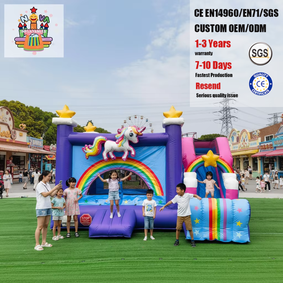 Château gonflable en PVC sur le thème de l'arc-en-ciel de l'unicorne Nova, structure de jeu pour enfants en plein air pour les fêtes