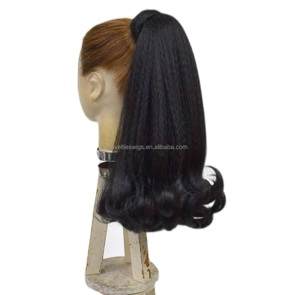 Nouveautés Queue de Cheval Synthétique 14 Pouces Yaki Cheveux Bouclés Extrémités à Enrouler Pour Femmes Noires