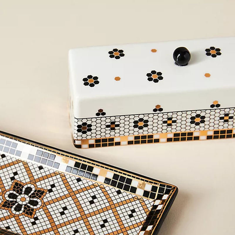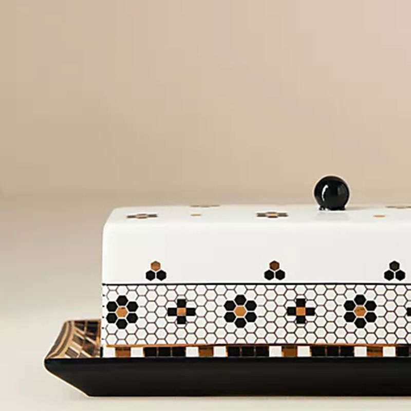 Beurrier rectangulaire en céramique personnalisé avec couvercle motif cœur sur couvercle beurrier