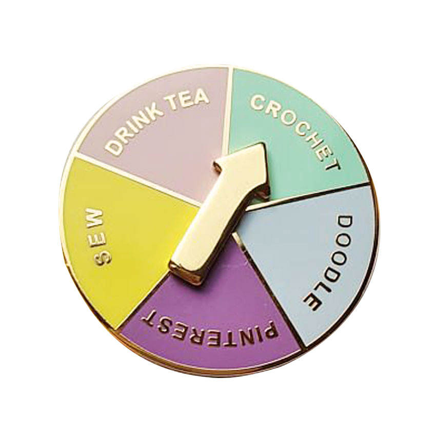 Épingle à revers rotative en métal émaillé avec roue mobile, design original et personnalisé