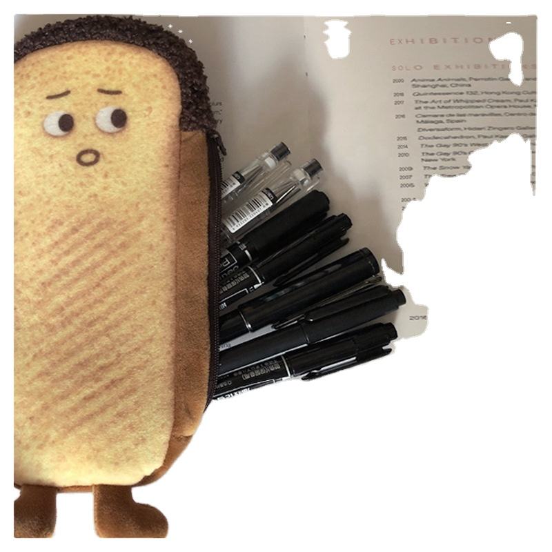 Nouveauté papeterie fermeture éclair personnalisée confortable apparence de dessin animé particulier joli sac de stylo toast pour les jeunes