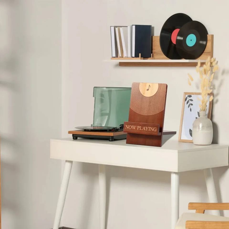 Support pour disques vinyles « En cours de lecture » : Support en bois classique pour disques vinyles, panneau « En cours de lecture » pour ranger vos albums, accessoires pour vinyles