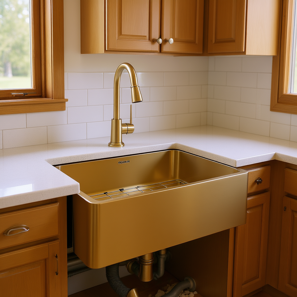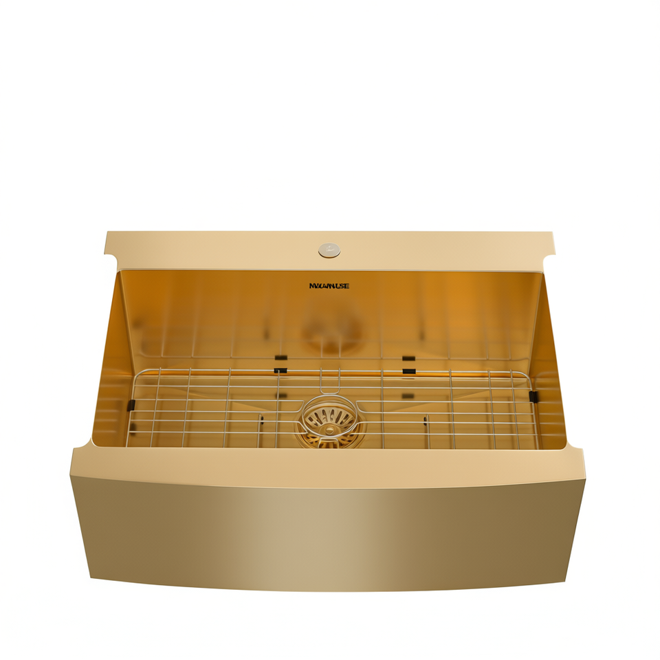 Évier de cuisine Nuance 30 pouces à face frontale, style ferme, cuve unique, finition dorée, en acier inoxydable