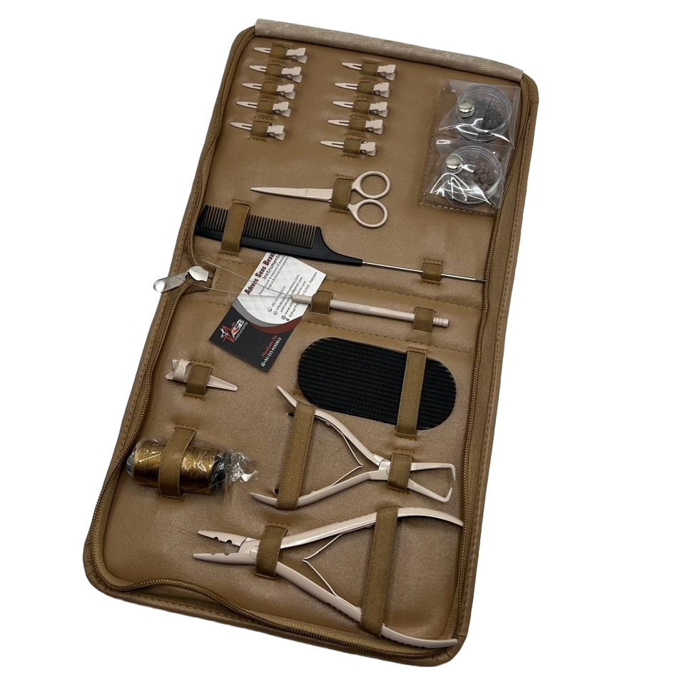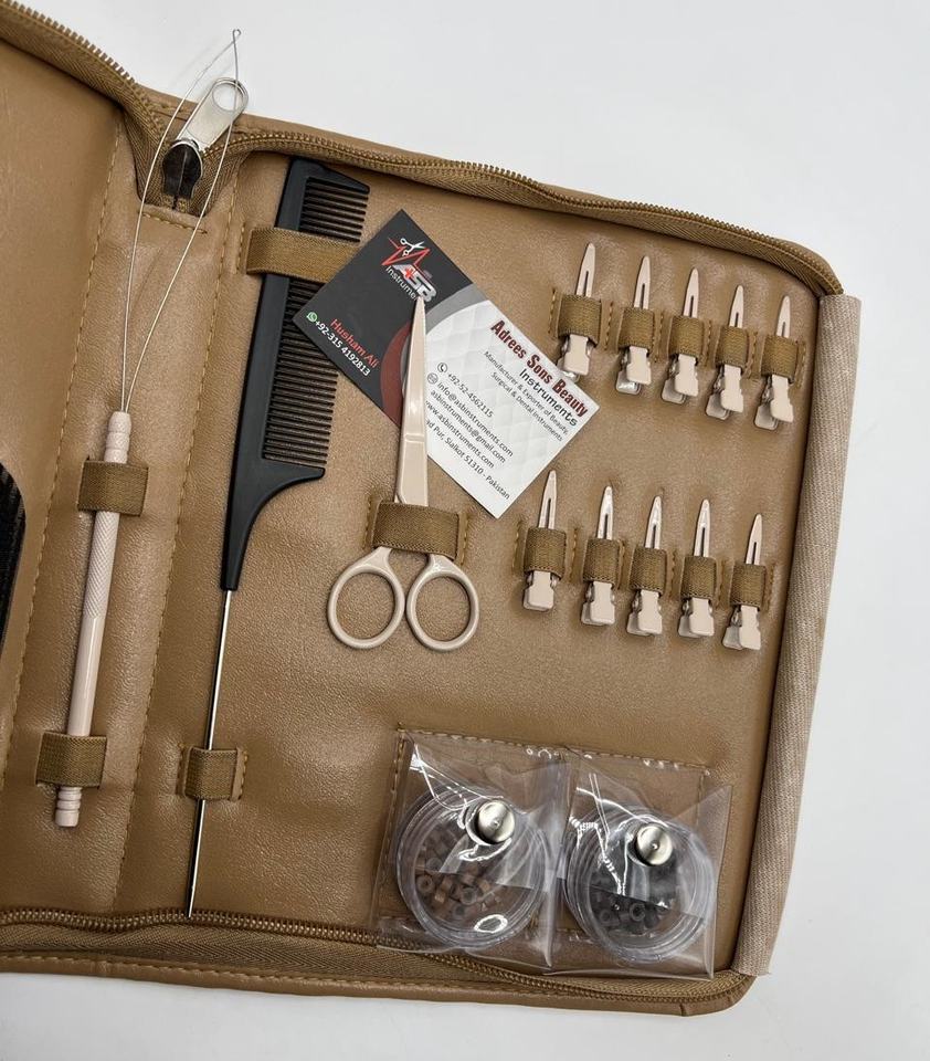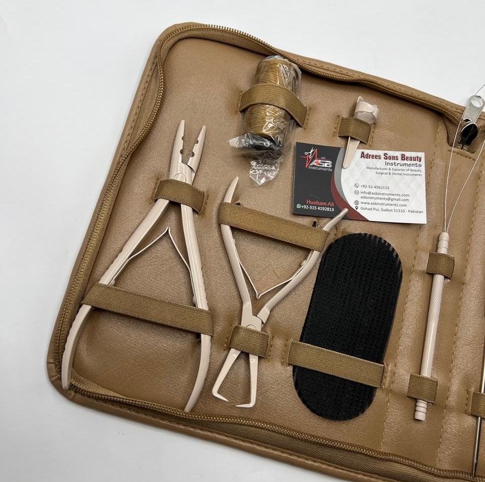 Nude Custom Logo Hair Extension Pliers Tools Kit Set Hook Hair Extension Beads with Box Threads C Shape Needles Stainless Steel