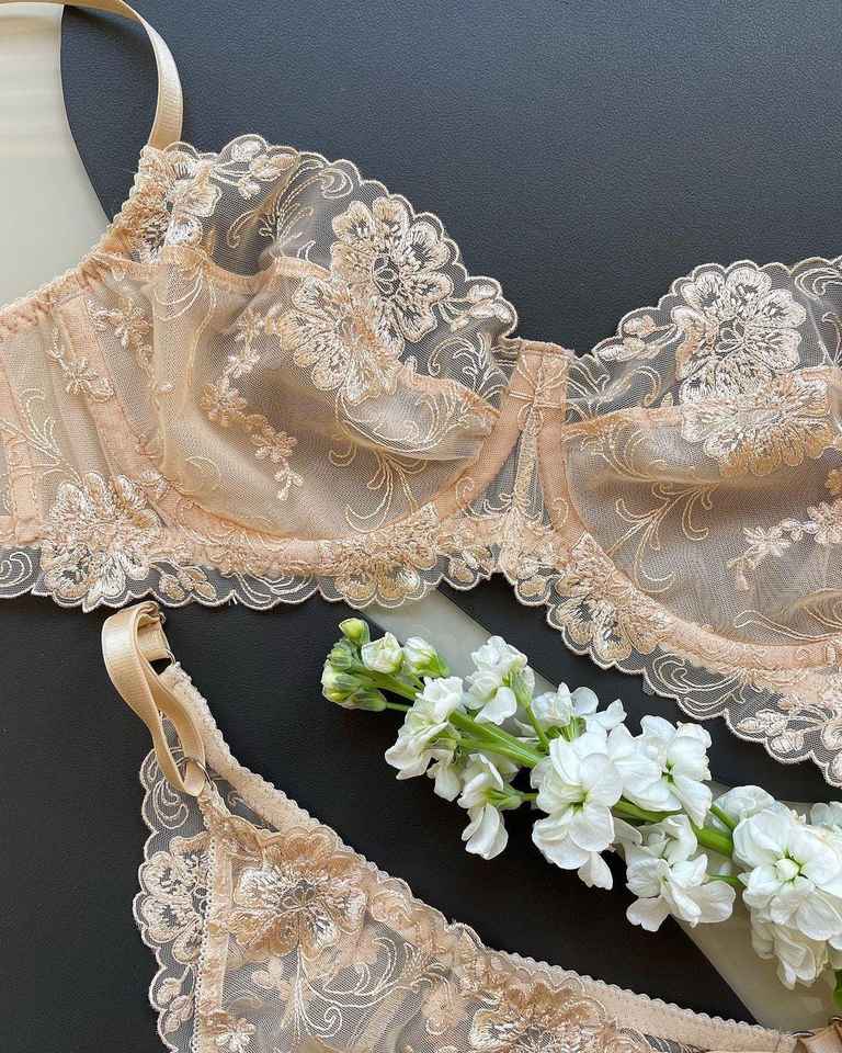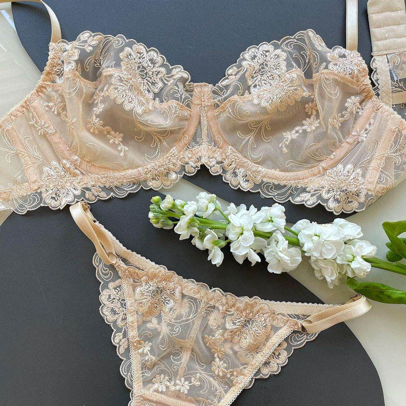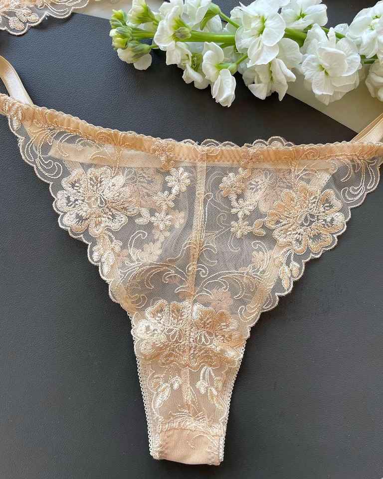 Ensemble de lingerie brodée florale nude ensemble de culotte de soutien-gorge en dentelle beige lingerie de nuit de mariage lingerie sexy culotte de soutien-gorge pantalon en T