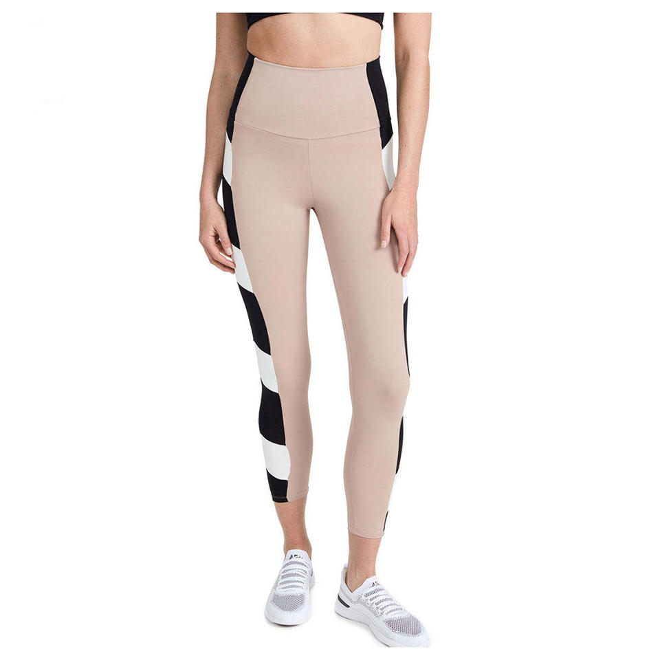 Leggings taille haute couleur nude, pantalon de sport à blocs de couleur noir et blanc, avec panneaux rayés en zigzag pour femme